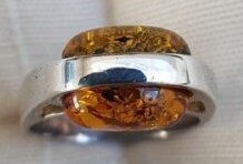 Ostseeschmuck Bernsteinring Silber poliert zwei Farben